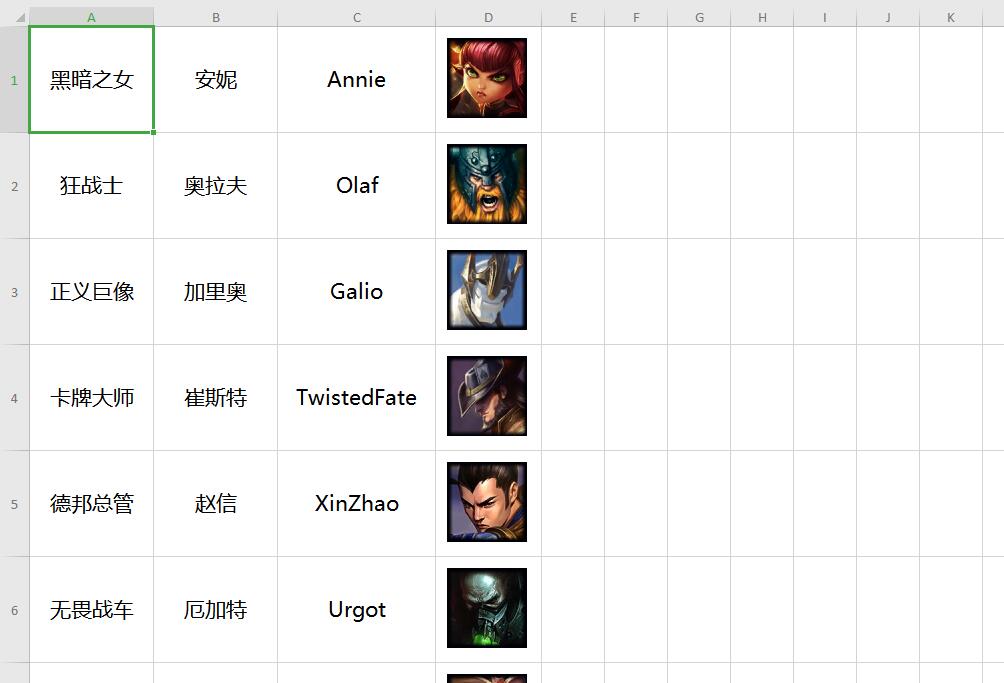 英雄联盟英雄英文名好美呀(附代码,excel带图,sql)